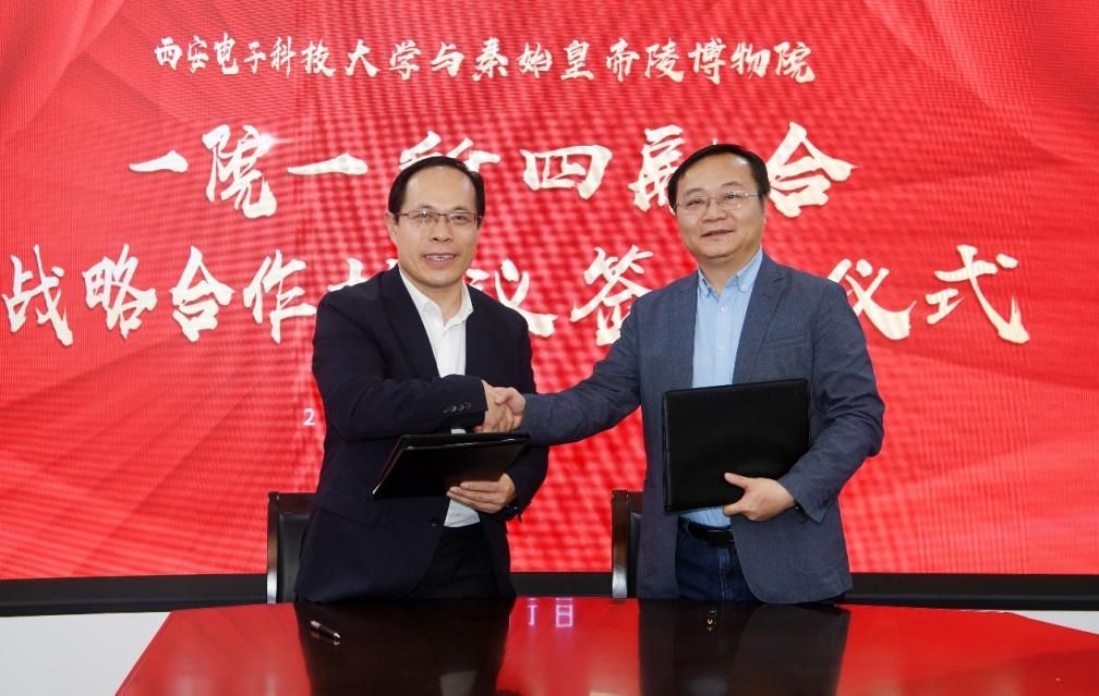 (通讯员:陈亚玲、潘颖楠)11月1日下午,西电与秦始皇帝陵博物院战略合作协议签约仪式在秦始皇帝陵博物院举行。陕西省文物局党组成员、副局长钱继奎,陕西省委宣传部对外宣传处处长王战军,秦始皇帝陵博物院党委书记、院长李岗,学校副校长张进成出席签约仪式并致辞。签约仪式由秦始皇帝陵博物院党委副书记、副院长田静主持。陕西省文物局文物交流合作处处长周亚群,学校校友事务与对外合作处处长韩光、外国语学院党委书记徐战利参加。